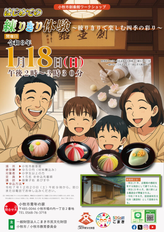※お申込み後のキャンセルは、1月7日(水)までにお願いします。それ以降にキャンセルされた場合は参加費を徴収させていただきますので、あらかじめご了承ください。小牧山城史跡情報館(れきしるこまき) TEL (0568)48-4646